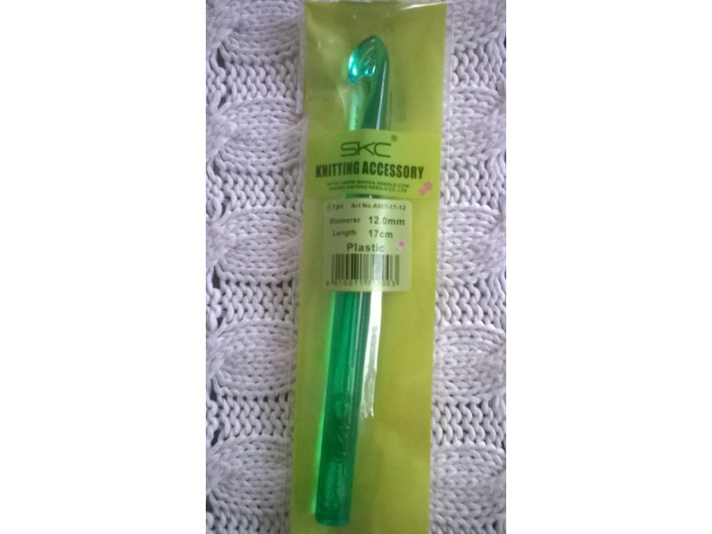 Pevný, celoplastový háček vhodný na výrobu koberečků.