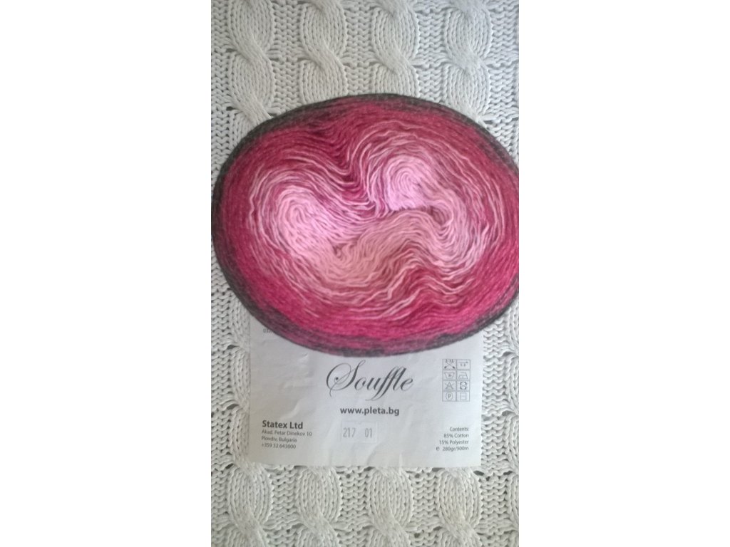 Příze Souffle je směs jemných bavlněných vláken duhových barev, které jsou podporovány transparentními polyesterovými vlákny. Souffle je vhodná pro pletení či háčkování letní dámské halenky, šálu, šátku, šatů, plavek, mandal... fantazii se meze rozhodně nekladou.Doplňkové parametry